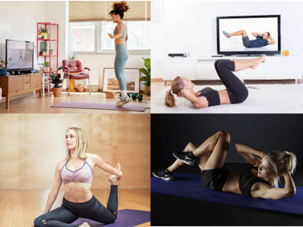 Most sessions are bodyweight-based or use minimal equipment like resistance bands, dumbbells, or water bottles.